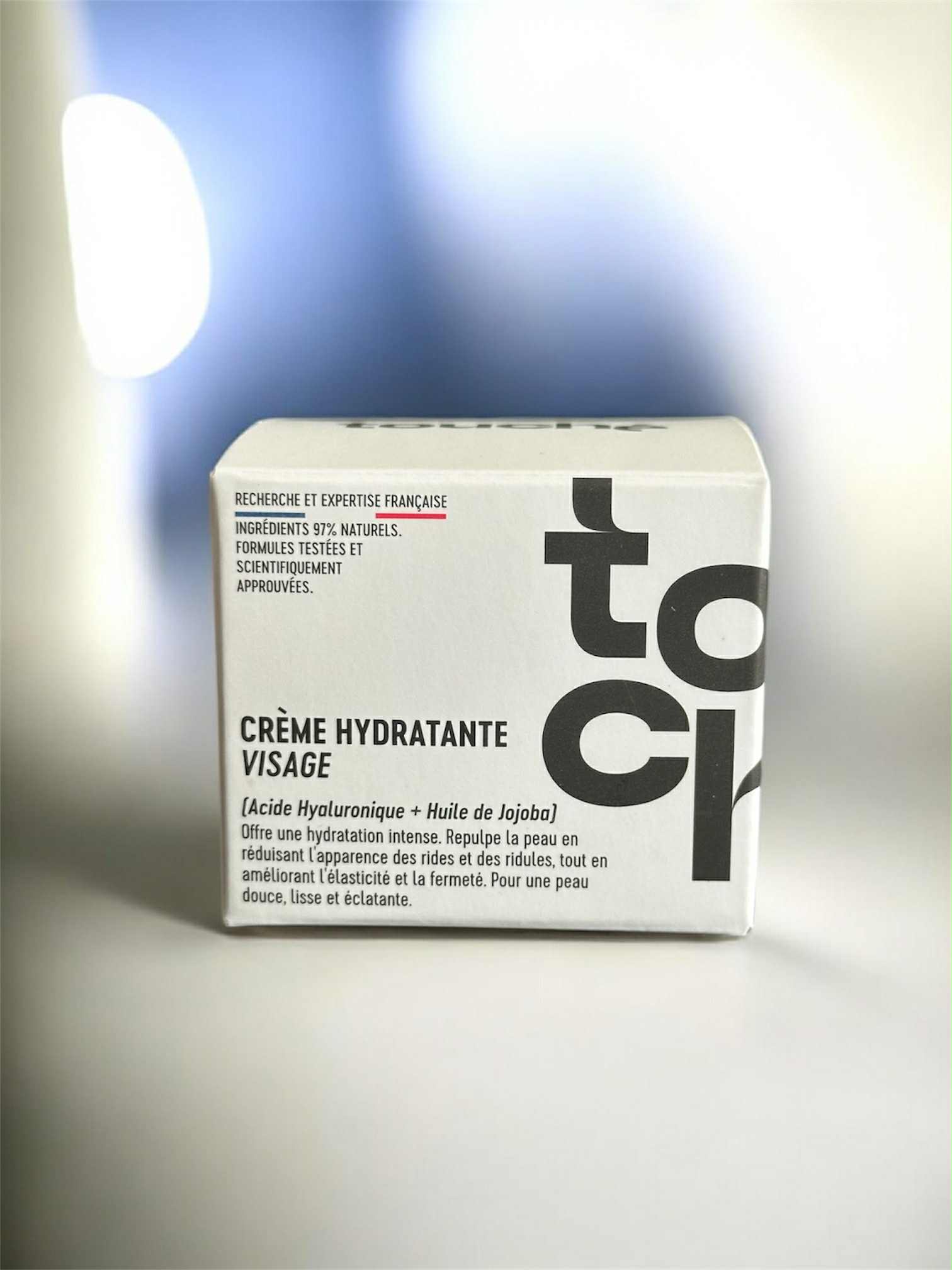 Offrez à votre peau une hydratation intense et durable avec la crème hydratante visage Touché 50ml, formulée à base d’acide hyaluronique et d’huile de jojoba, deux actifs reconnus pour leurs bienfaits nourrissants et repulpant.