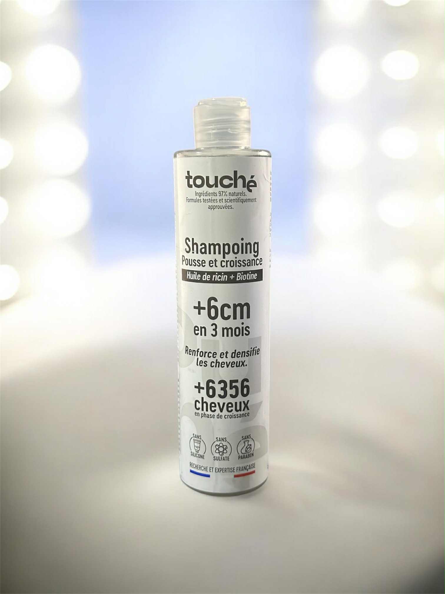 Le Shampoing Pousse & Croissance Touché est spécialement formulé pour stimuler la croissance des cheveux, renforcer la fibre capillaire et redonner densité et vitalité aux cheveux fragilisés.